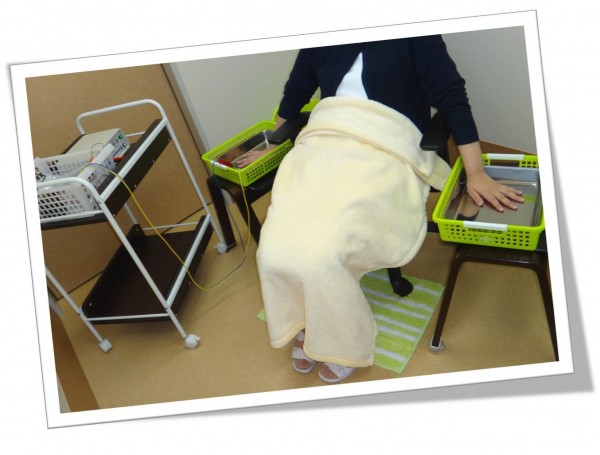 治療は水道水に患部を浸し、弱い電流を患部に流すことによりエクリン汗腺からの発汗を抑制します。通常弱い電流から行い、病状により電流を強くしていきます。1週間に1回~2回程度の頻度で治療を行います。早ければ3・4回の治療で効果が現れますが、効果が出にくい方もおられます。